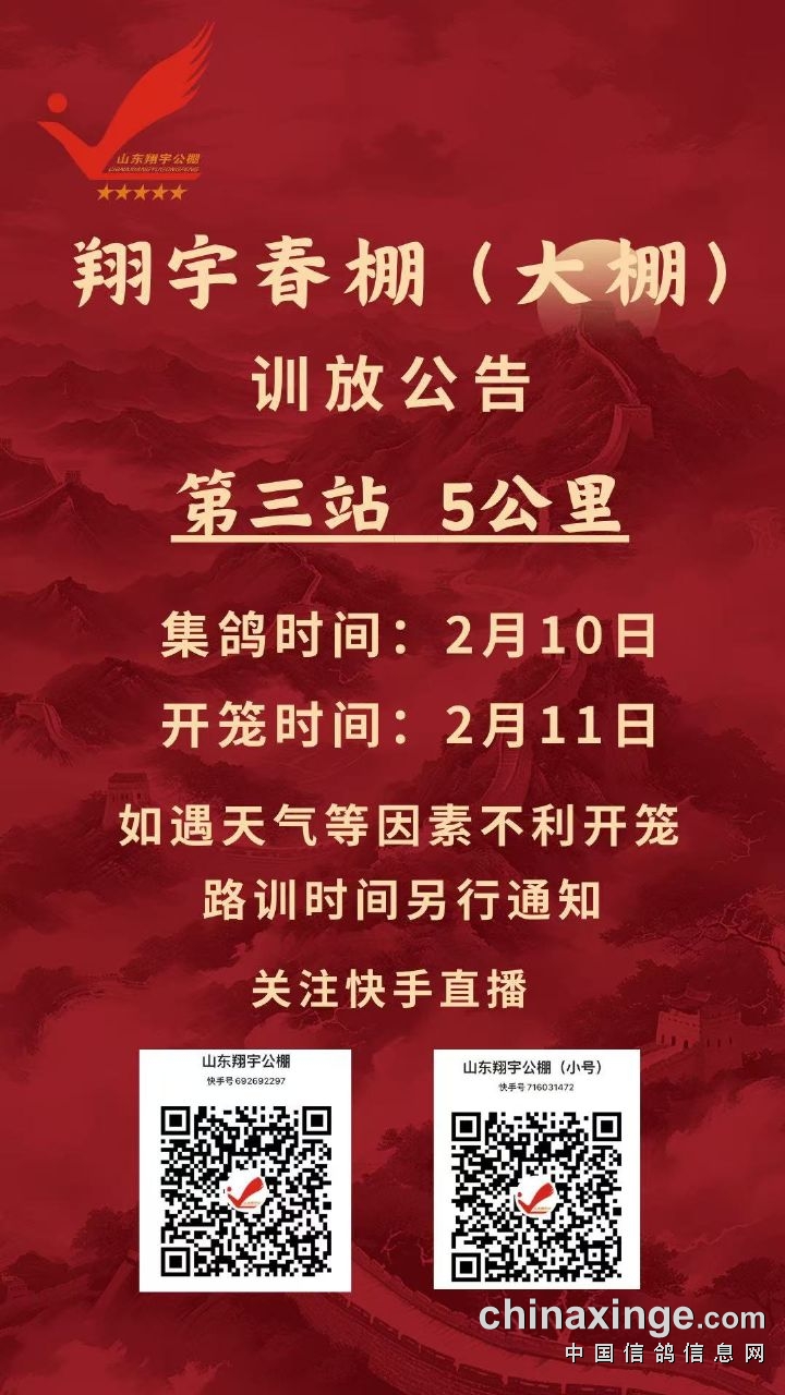 山东翔宇春棚(大棚)2026年资格赛开笼公告及数据直播链接