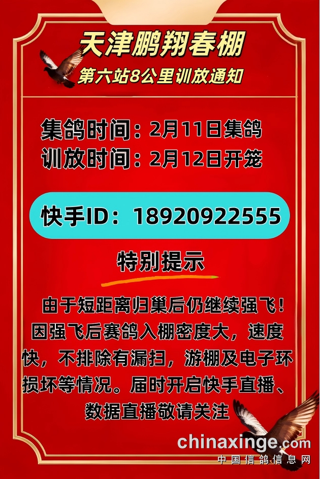天津鹏翔春棚第六站8公里训放通知
