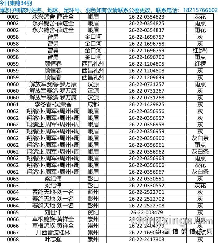提示:如果此页面是训放清单,要想快速查询鸽环号,请按