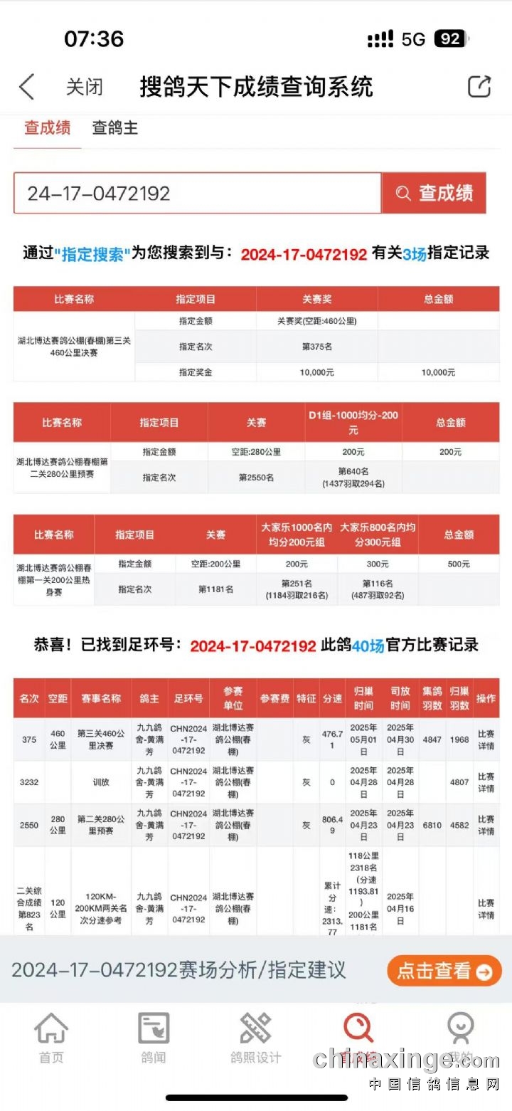提示:如果此页面是训放清单,要想快速查询鸽环号,请按