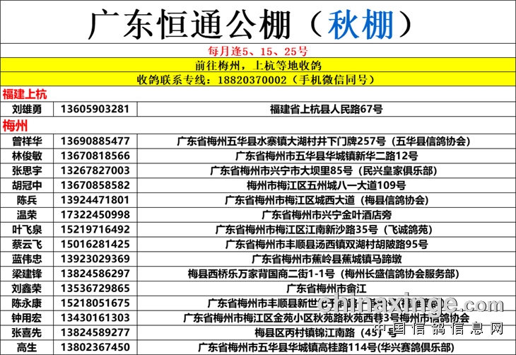 如需送鸽的鸽友请提前与本地代收点及司机联系,谢谢大家支持!
