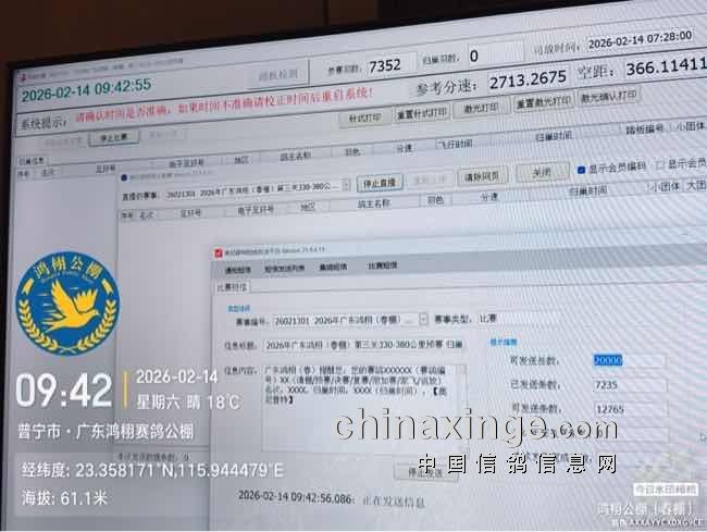 广东鸿栩(春棚)2026年首届春季四关赛330-380公里第三关预赛图集(归巢地)