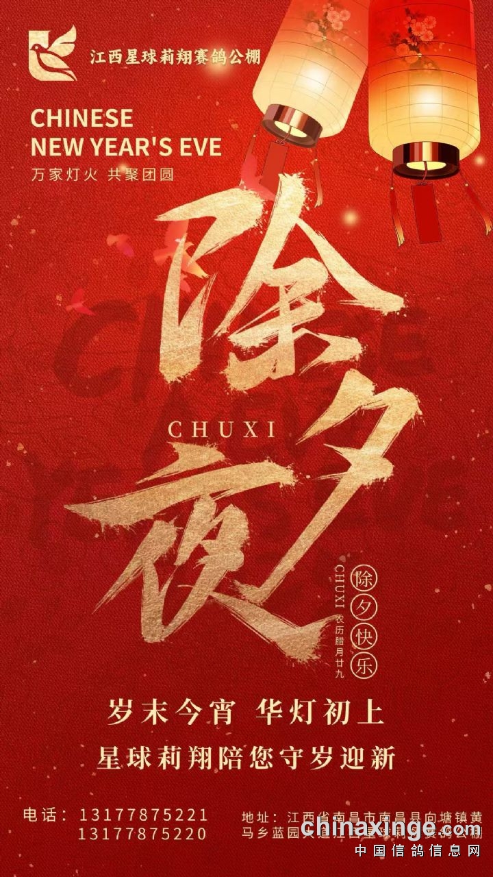 江西星球莉翔赛鸽公棚恭祝全国鸽友除夕快乐
