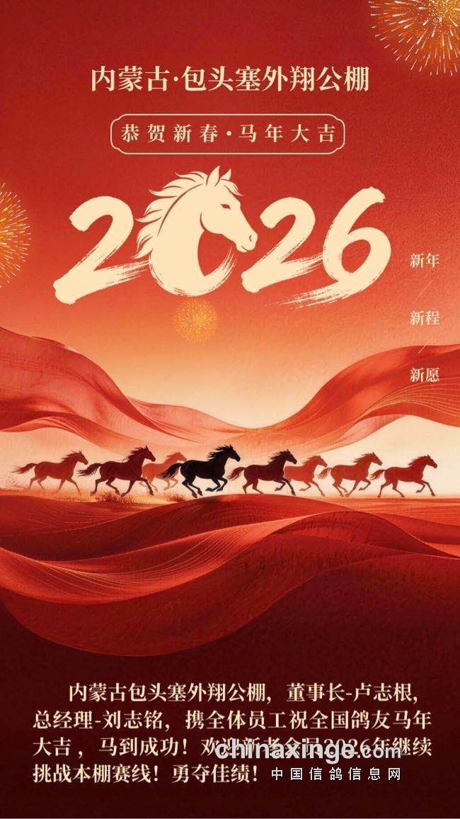 内蒙古包头塞外翔公棚祝鸽友朋友新春快乐!