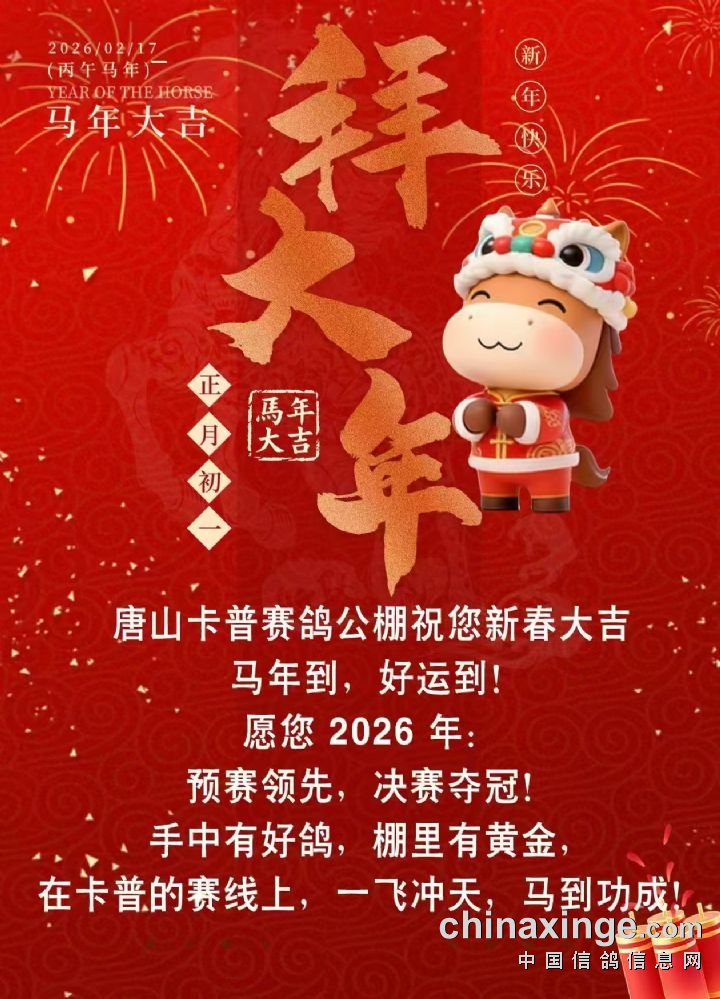 唐山卡普祝全国鸽友除夕安康 阖家幸福!
