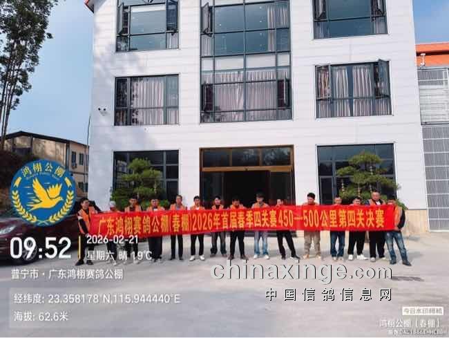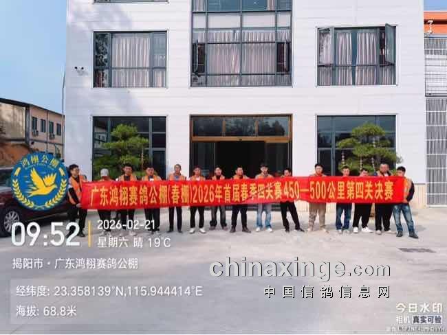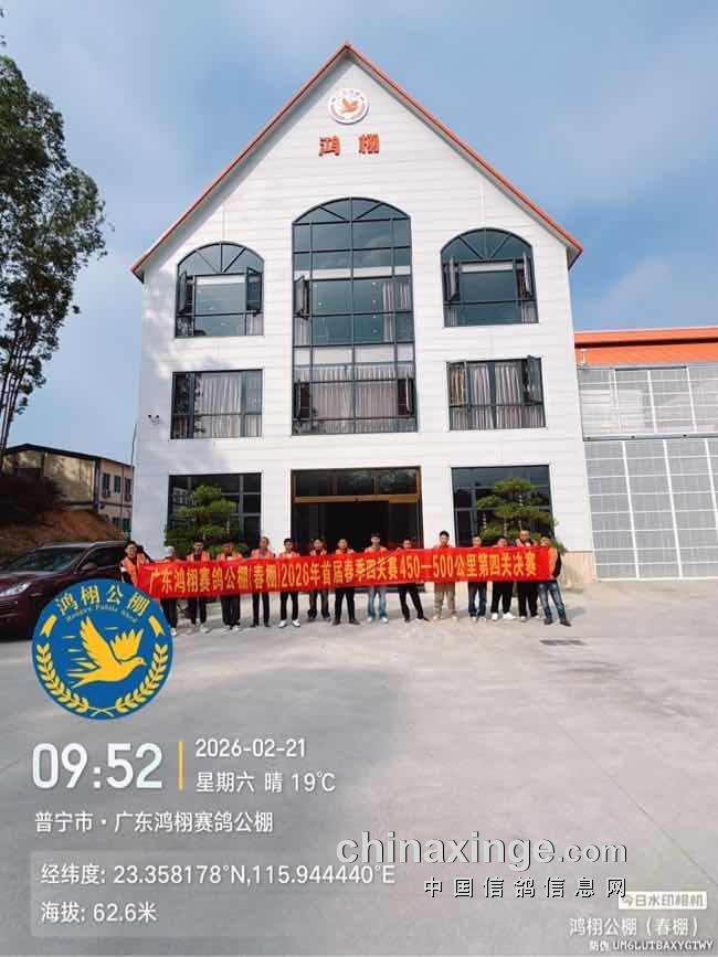 广东鸿栩(春棚)2026年首届春季四关赛500-580公里附加赛扫描直播链接
