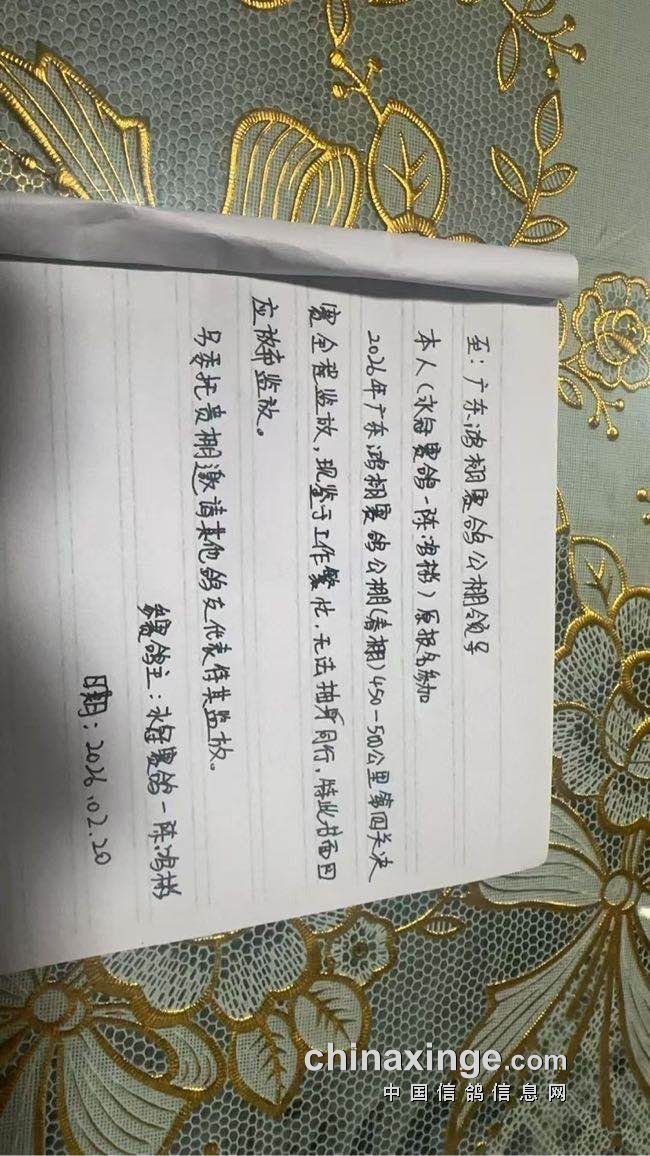 广东鸿栩(春棚)2026年首届春季四关赛500-580公里附加赛扫描直播链接