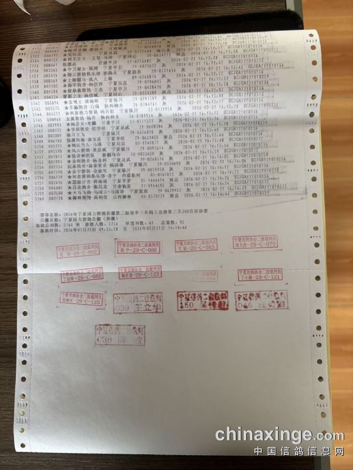 宁夏国力(春):850公里挑战赛集鸽明细(按顺序)