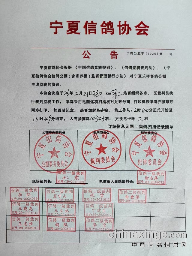 宁夏信鸽协会公告