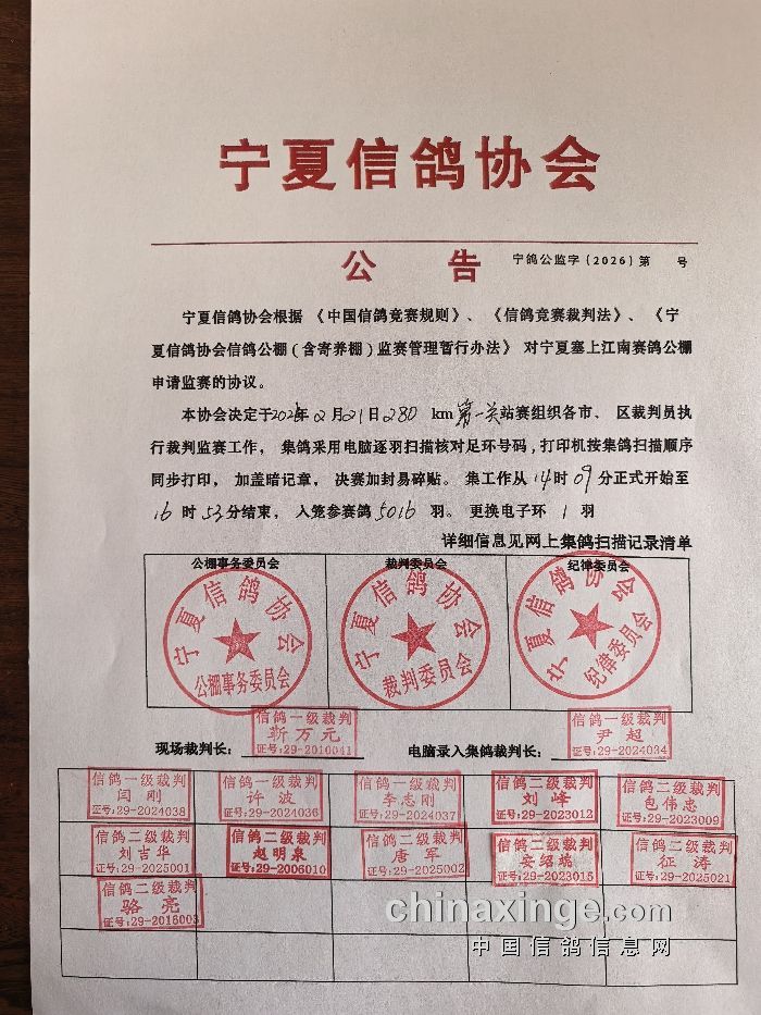 宁夏信鸽协会公告
