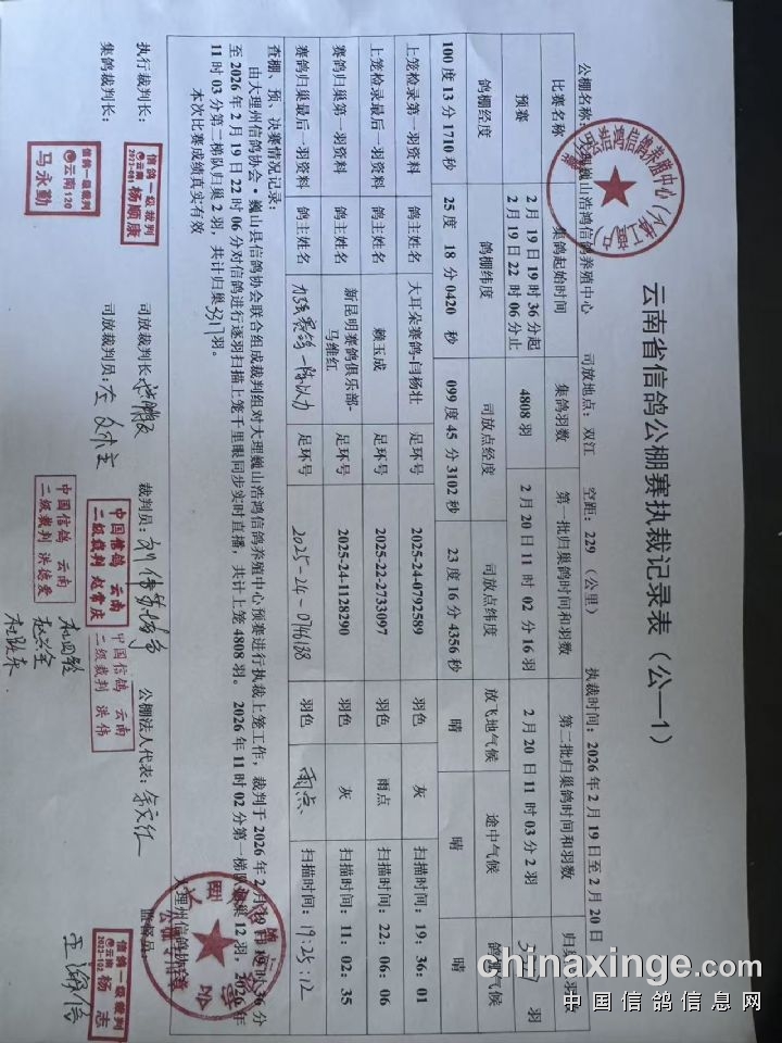 浩鸿赛鸽:预赛执裁文件