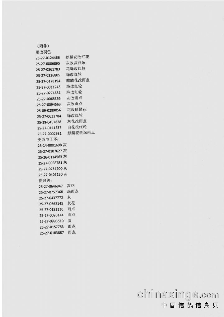 更改羽色14羽(见附件)