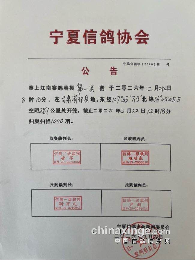 宁夏信鸽协会公告