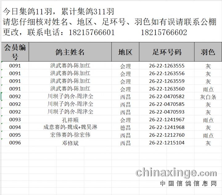 提示:如果此页面是训放清单,要想快速查询鸽环号,请按