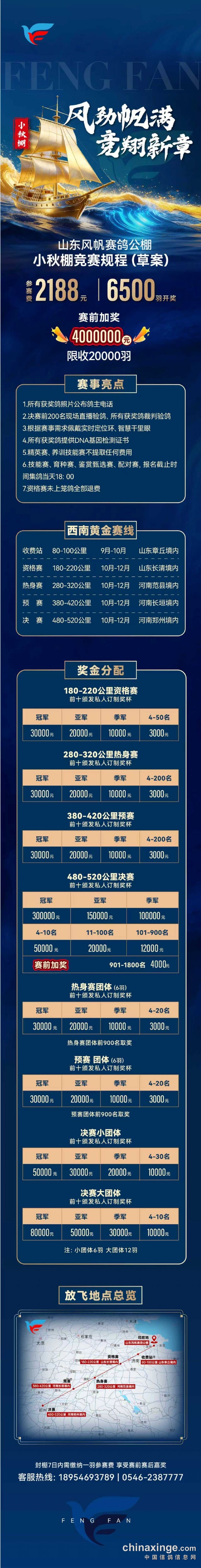 山东风帆赛鸽公棚(秋棚)首届竞赛规程简章