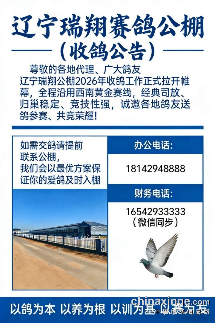 辽宁瑞翔赛鸽公棚2026年收鸽公告