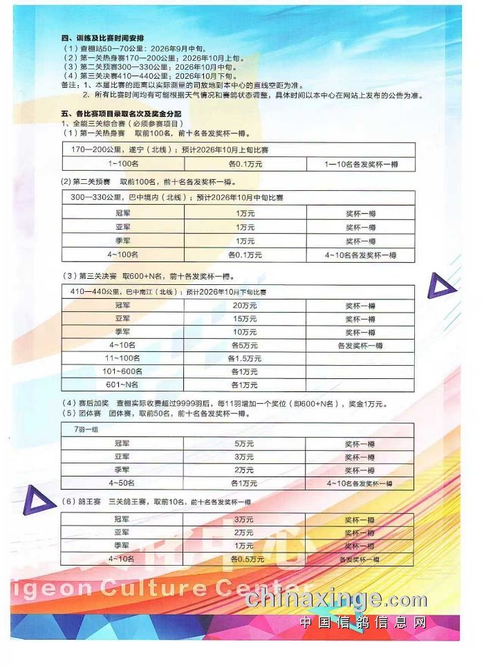 2026年四川长召信鸽文化中心(秋季)竞赛规程(草案)