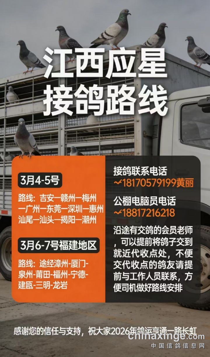 江西应星赛鸽公棚2026年赛事会员预定