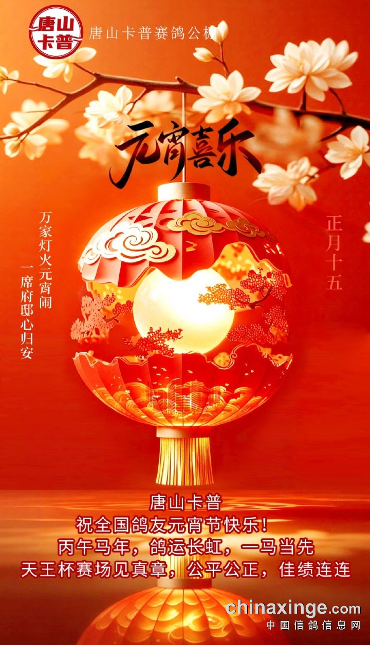 2026唐山卡普赛鸽公棚祝愿全国鸽友元宵快乐