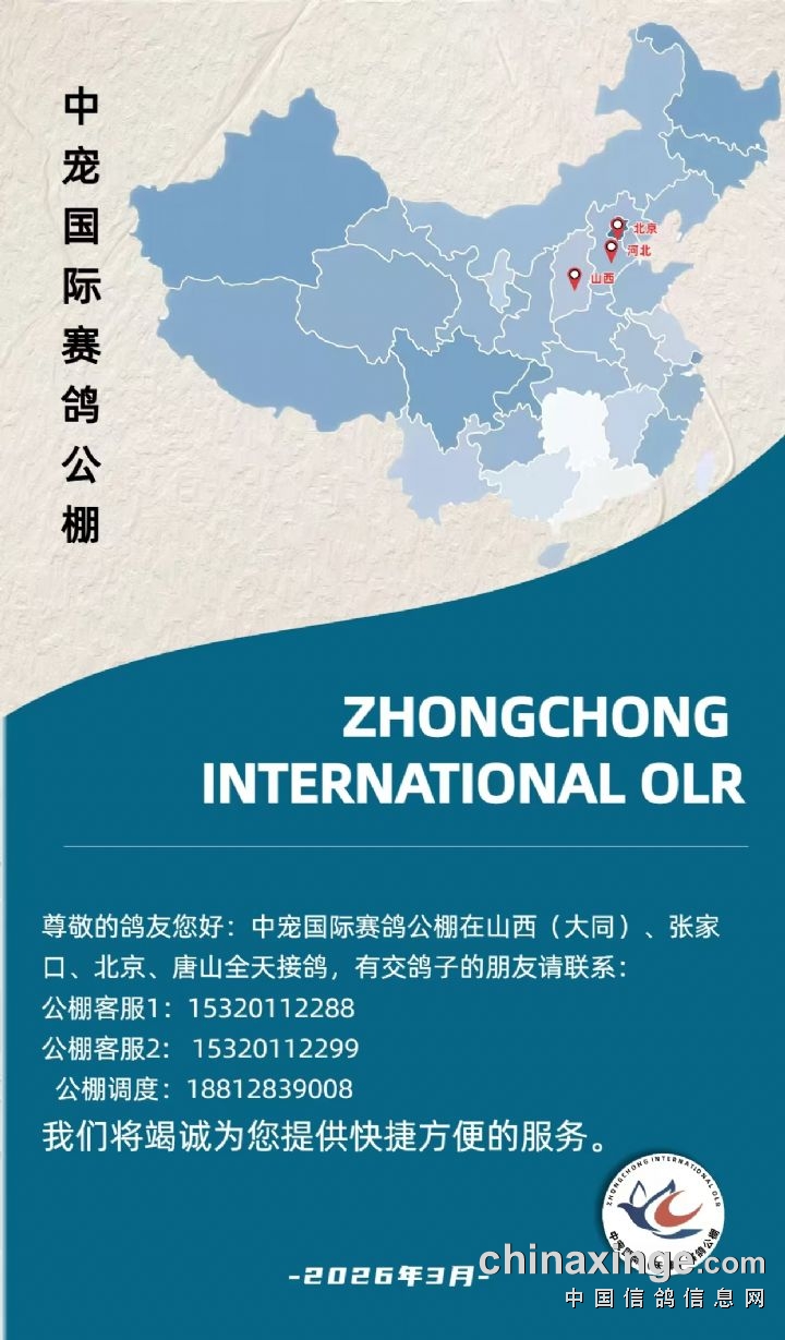 <天津中宠国际公棚>尊敬的鸽友您好:中宠国际赛鸽公棚在山西(大同)、张家口、北京、唐山全天接鸽,有交鸽子的朋友请联系:公棚客服1:153.2011.2288、客服2:153.2011.2299、调度188.1283.9008我们将竭诚为您提供快捷方便的服务