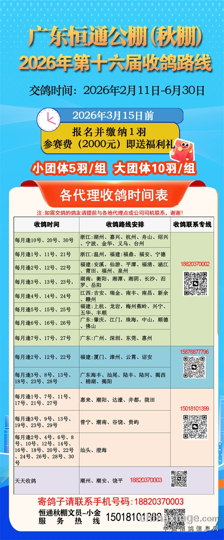 如需送鸽的鸽友请提前与本地代收点及司机联系,谢谢大家支持!
