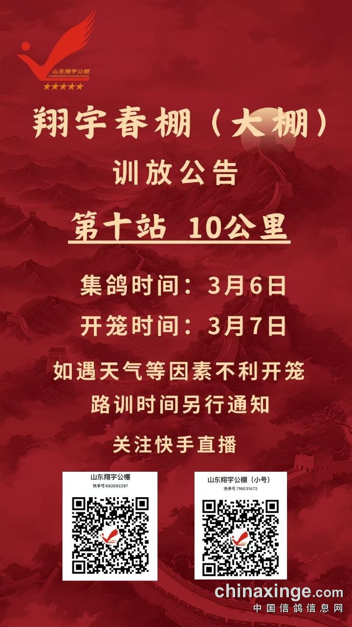 山东翔宇春棚(大棚)第十站10公里训放公告