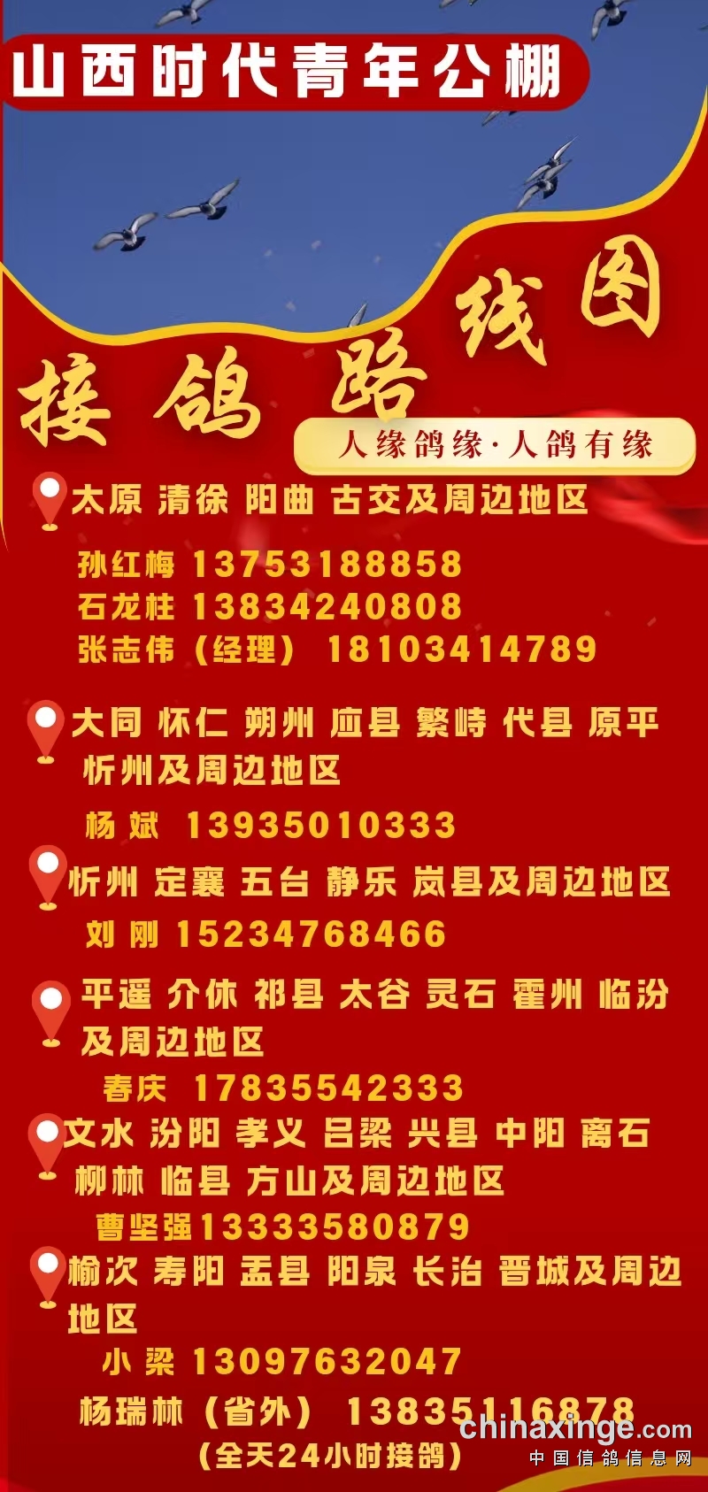 山西时代青年公棚2026年接鸽路线图
