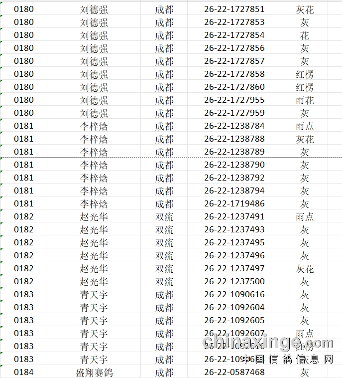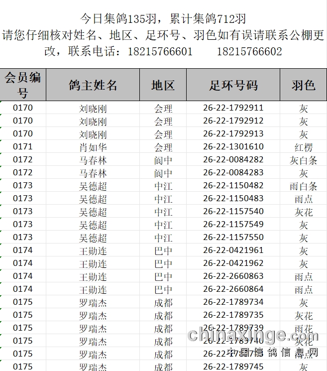 提示:如果此页面是训放清单,要想快速查询鸽环号,请按
