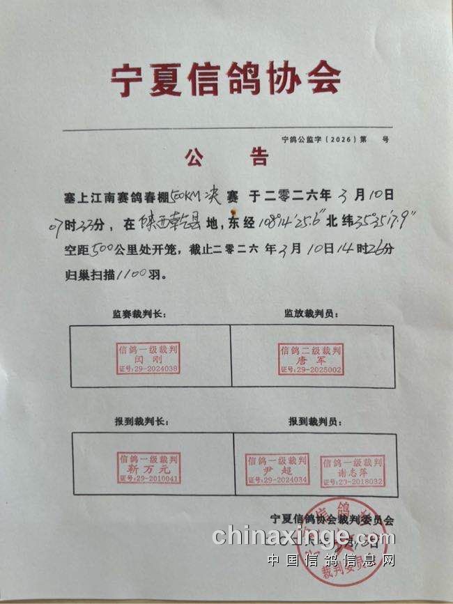 塞上江南公棚第三关500公里“塞上江南杯”核对通知