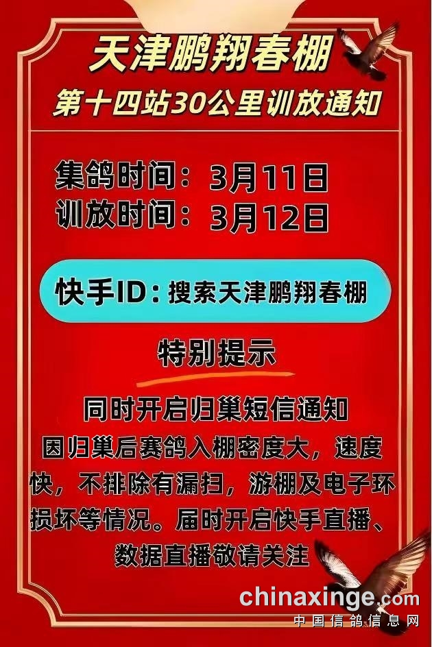天津鹏翔春棚第十站8公里训放取消通知