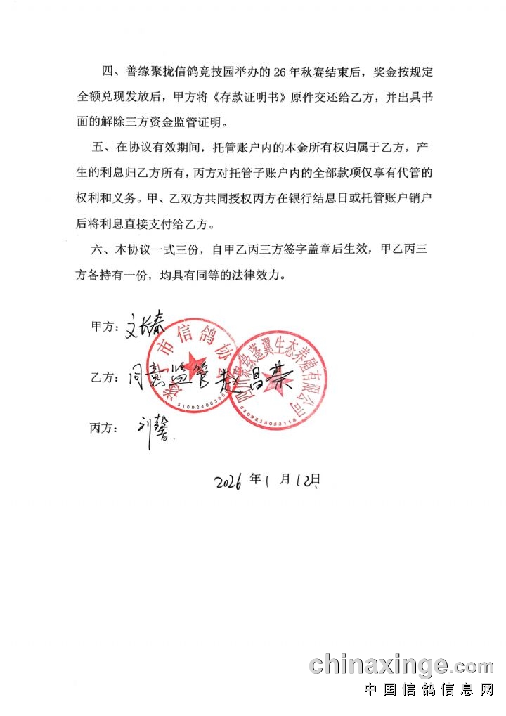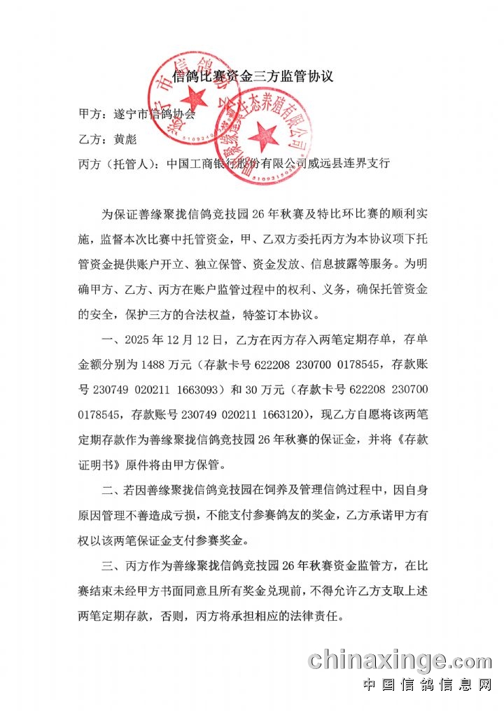 2026年善缘聚拢秋季比赛资金三方监管协议公示文件