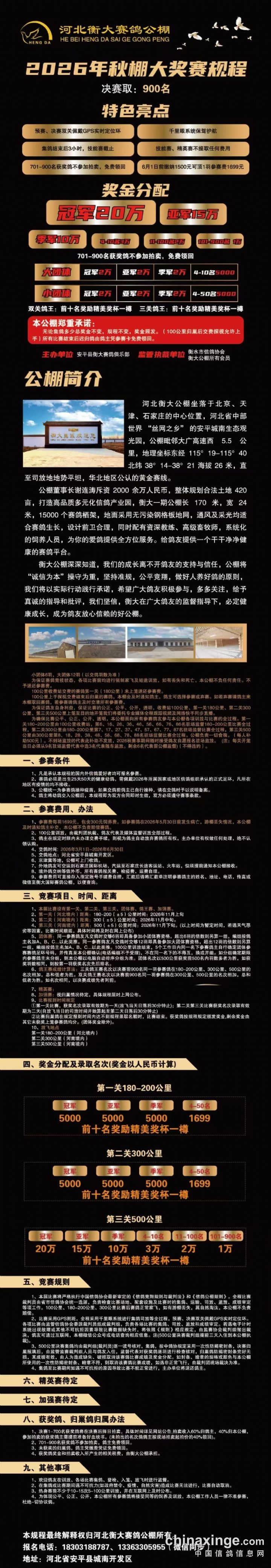 河北衡大赛鸽公棚2026年秋棚大奖赛规程