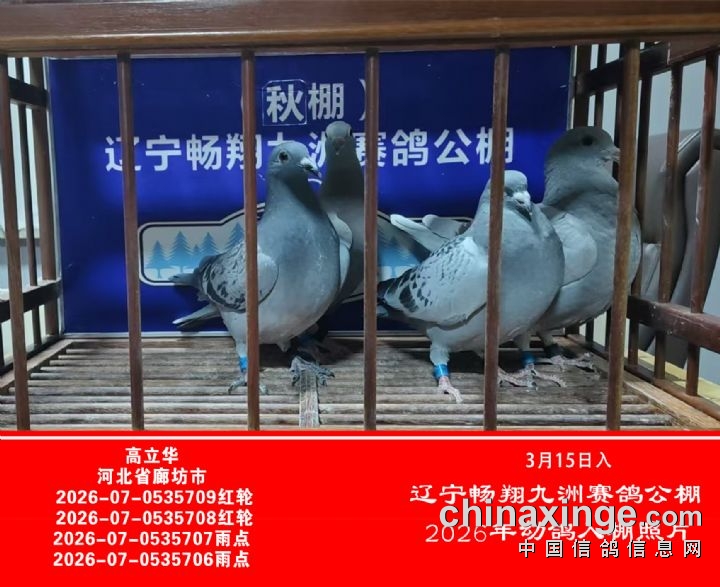 辽宁畅翔九洲赛鸽公棚3月15日入棚鸽照片