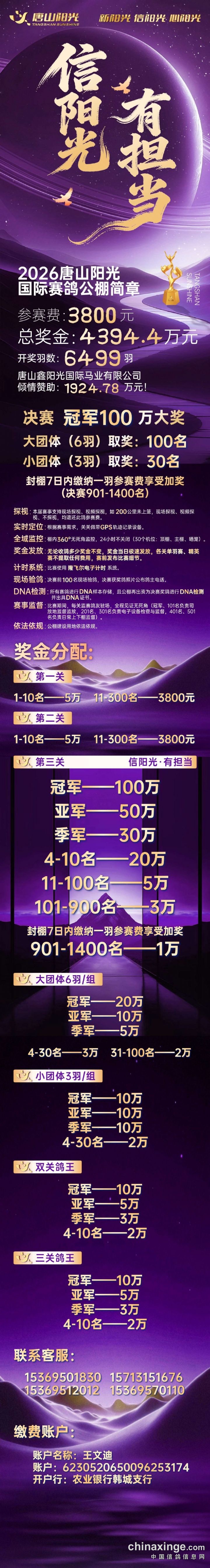 2026年唐山阳光国际赛鸽公棚小棚最新竞赛规程(简章)