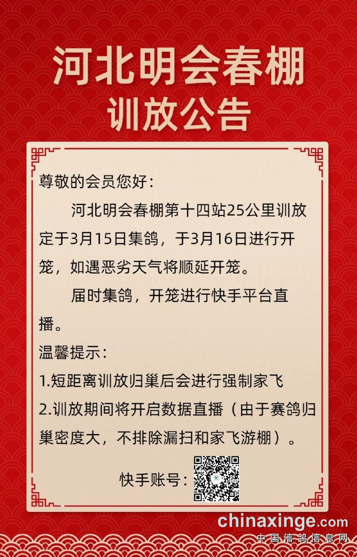 河北明会春棚第十四站25公里训放归巢数据直播