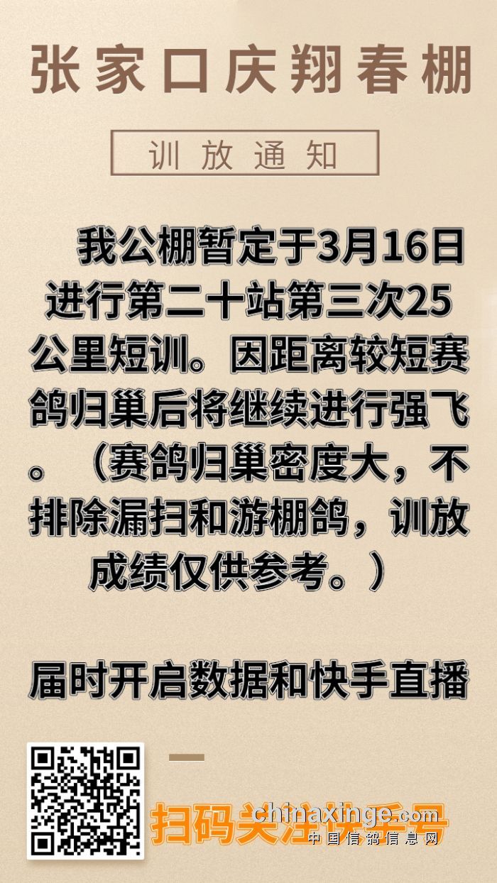 张家口庆翔春棚第二十站第三次25公里训放通知