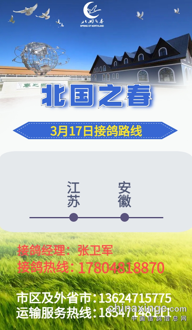 北国之春(小秋棚):3月17日江苏、安徽接鸽计划
