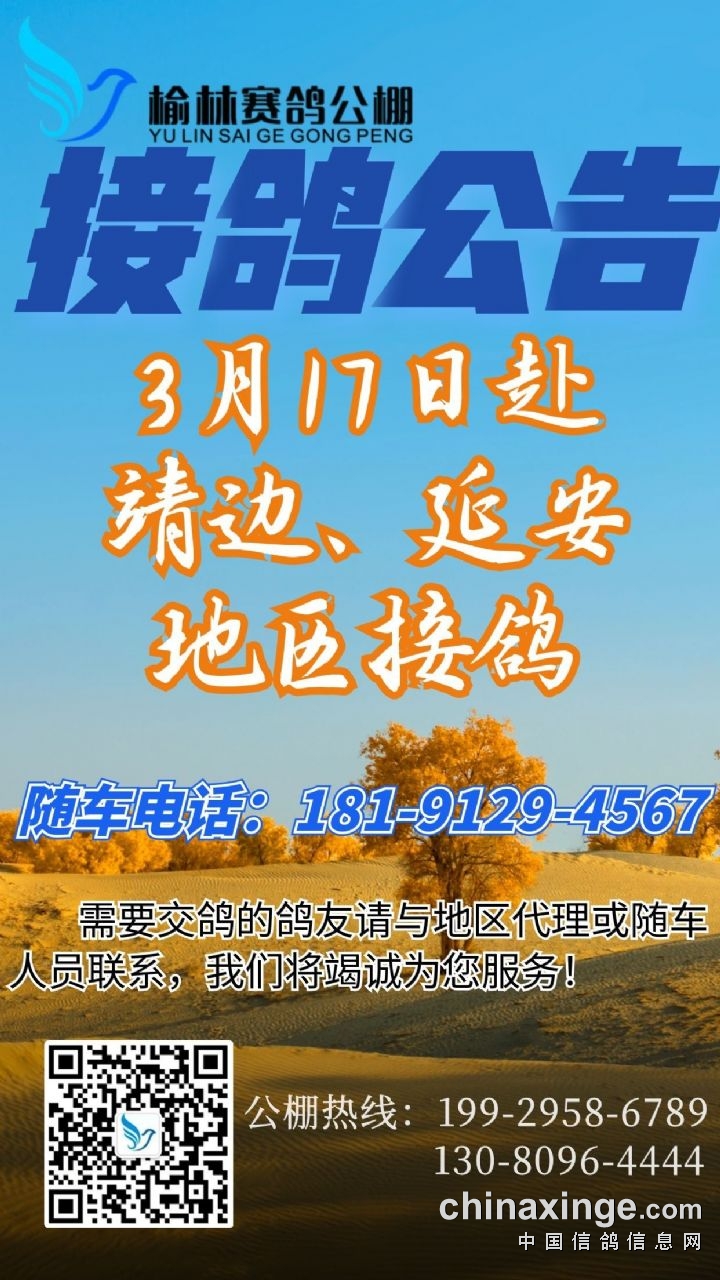 陕西榆林赛鸽公棚3月17日赴甘肃临夏接鸽公告