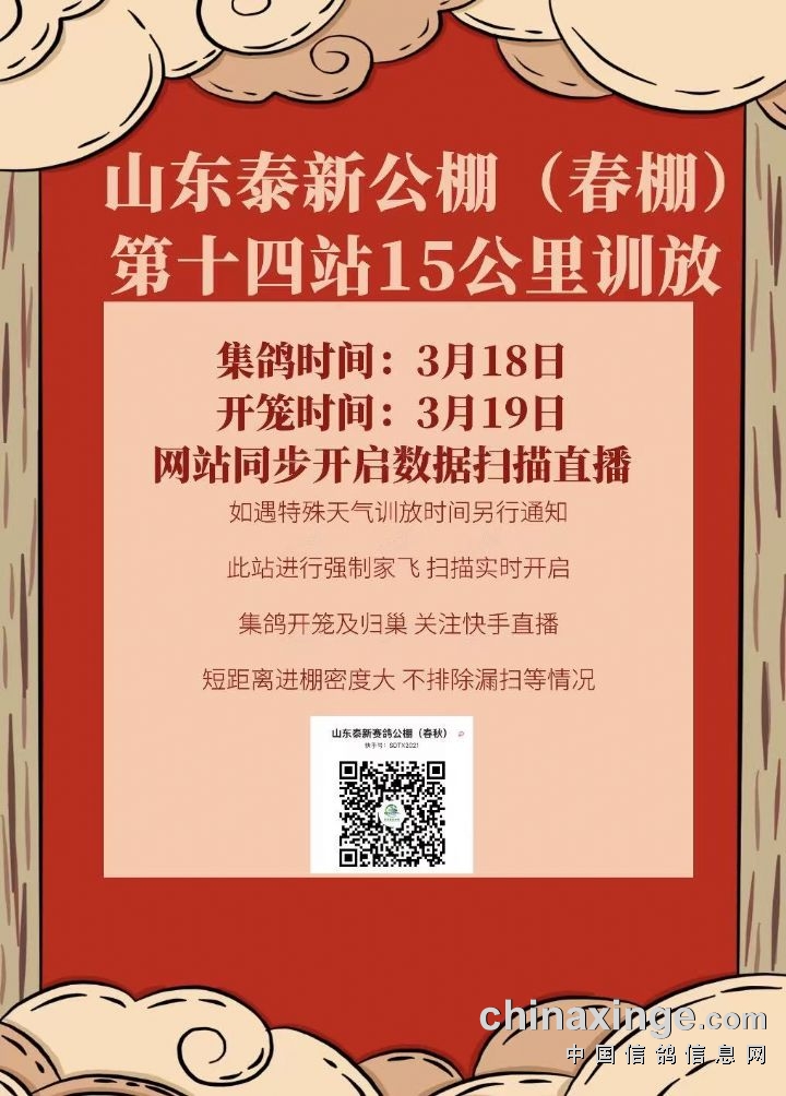 山东泰新赛鸽公棚(春棚)3月15日家飞扫描直播链接