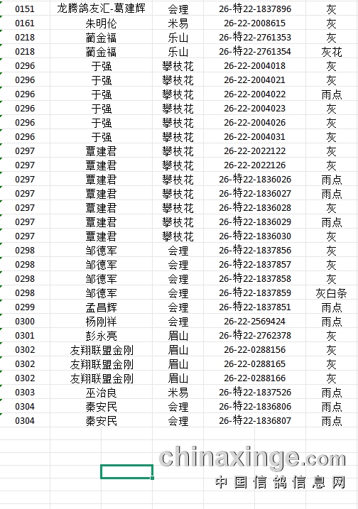 提示:如果此页面是训放清单,要想快速查询鸽环号,请按