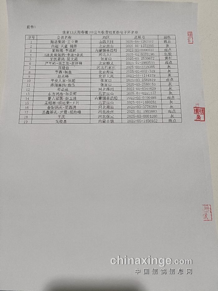 张家口庆翔春棚现场探视名单(请您仔细核对,如有误请联系公棚电话:13315333040)