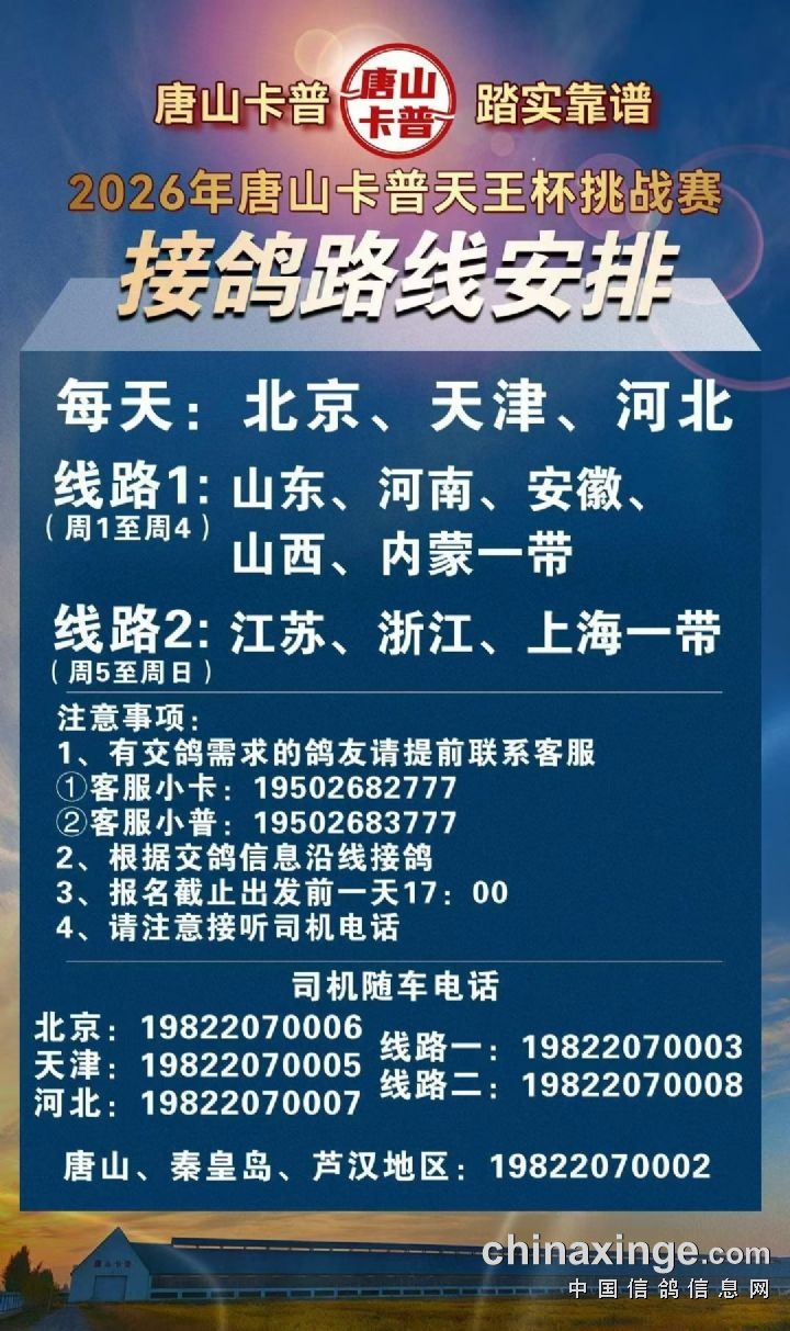 2026唐山卡普公棚近期接鸽路线