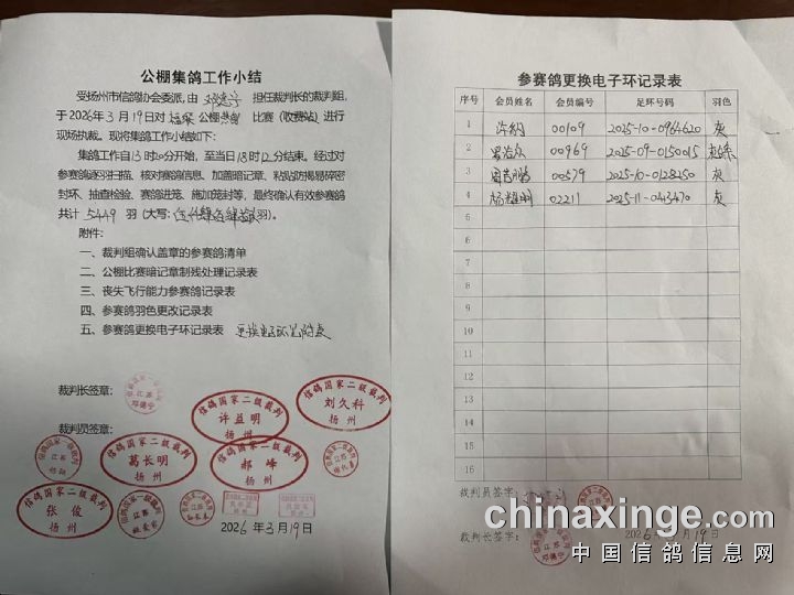 扬州福联翱翔热身赛开笼公告及扫描直播网址
