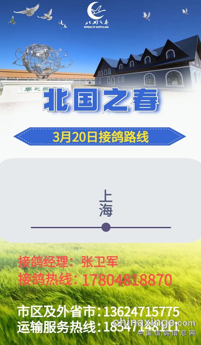 北国之春(大秋棚):3月20日上海接鸽计划