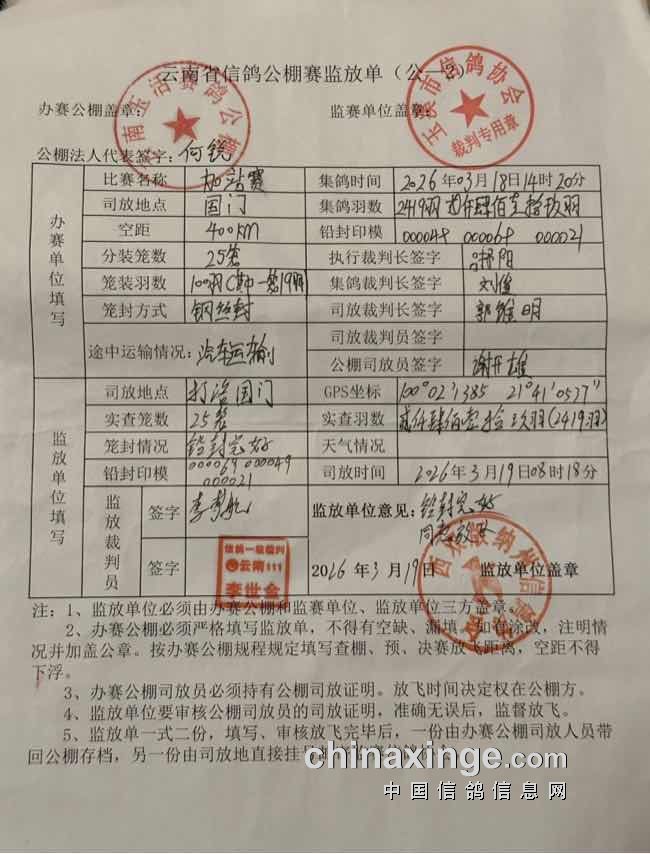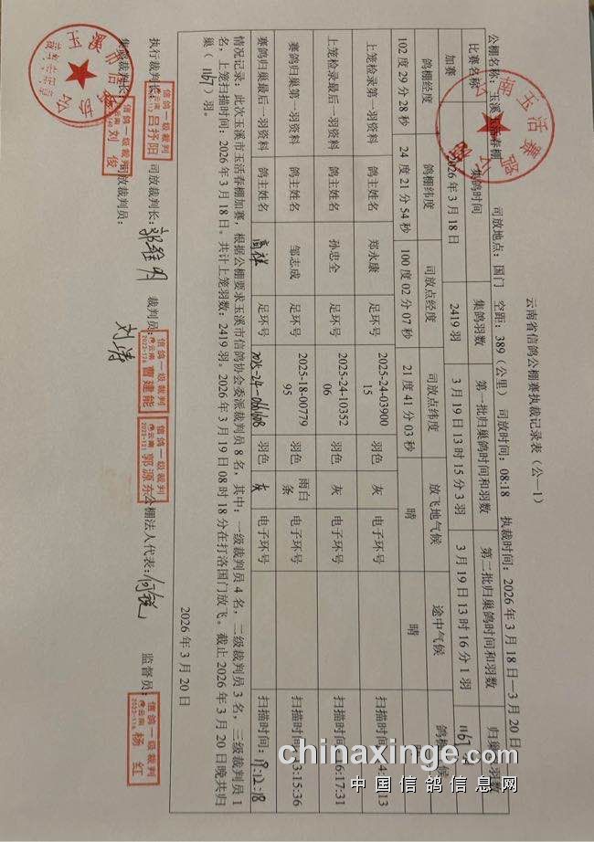 云南玉活(春棚):加站赛及自愿追加赛未上笼报名鸽