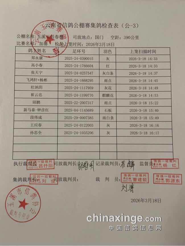 云南玉活(春棚):加站赛及自愿追加赛核对公告
