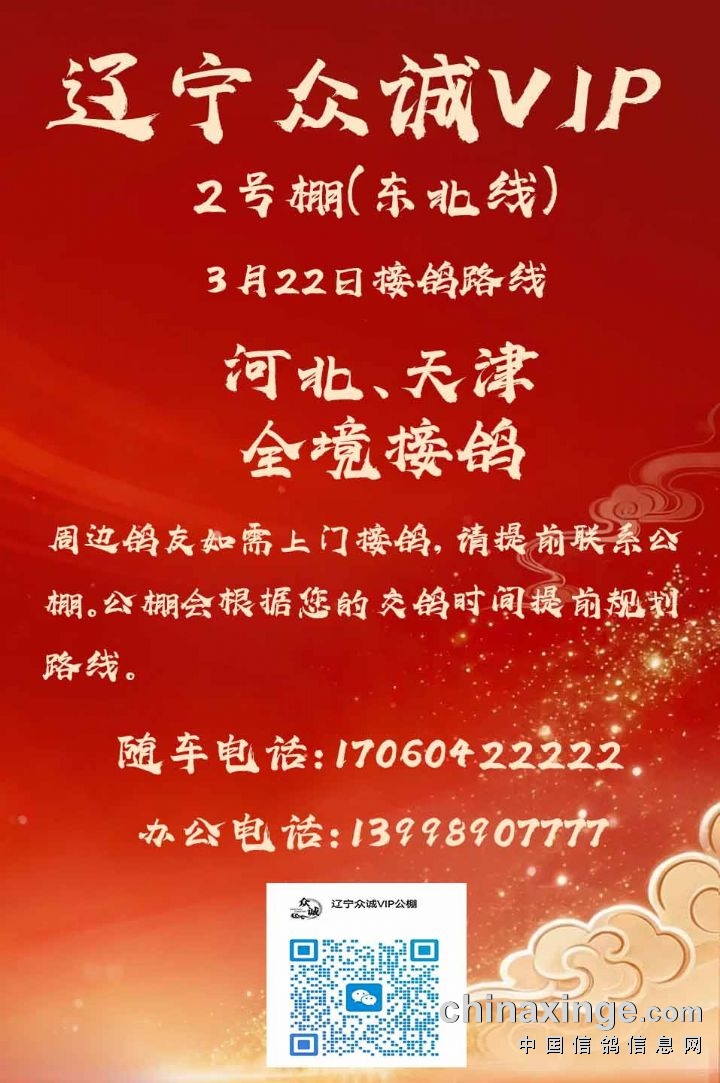 辽宁众诚VIP赛鸽公棚2号棚(东北线)3月22日河北、天津接鸽路线