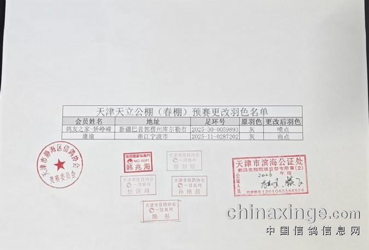 您好,我棚于3月21日对现存棚赛鸽进行了逐羽扫描,所有赛鸽均已全部扫描完毕(不包括游棚赛鸽)。现将赛鸽羽色不符的进行变更,幼鸽入棚后换羽会有所变化,赛鸽羽色以赛鸽换羽后实际羽色为准.