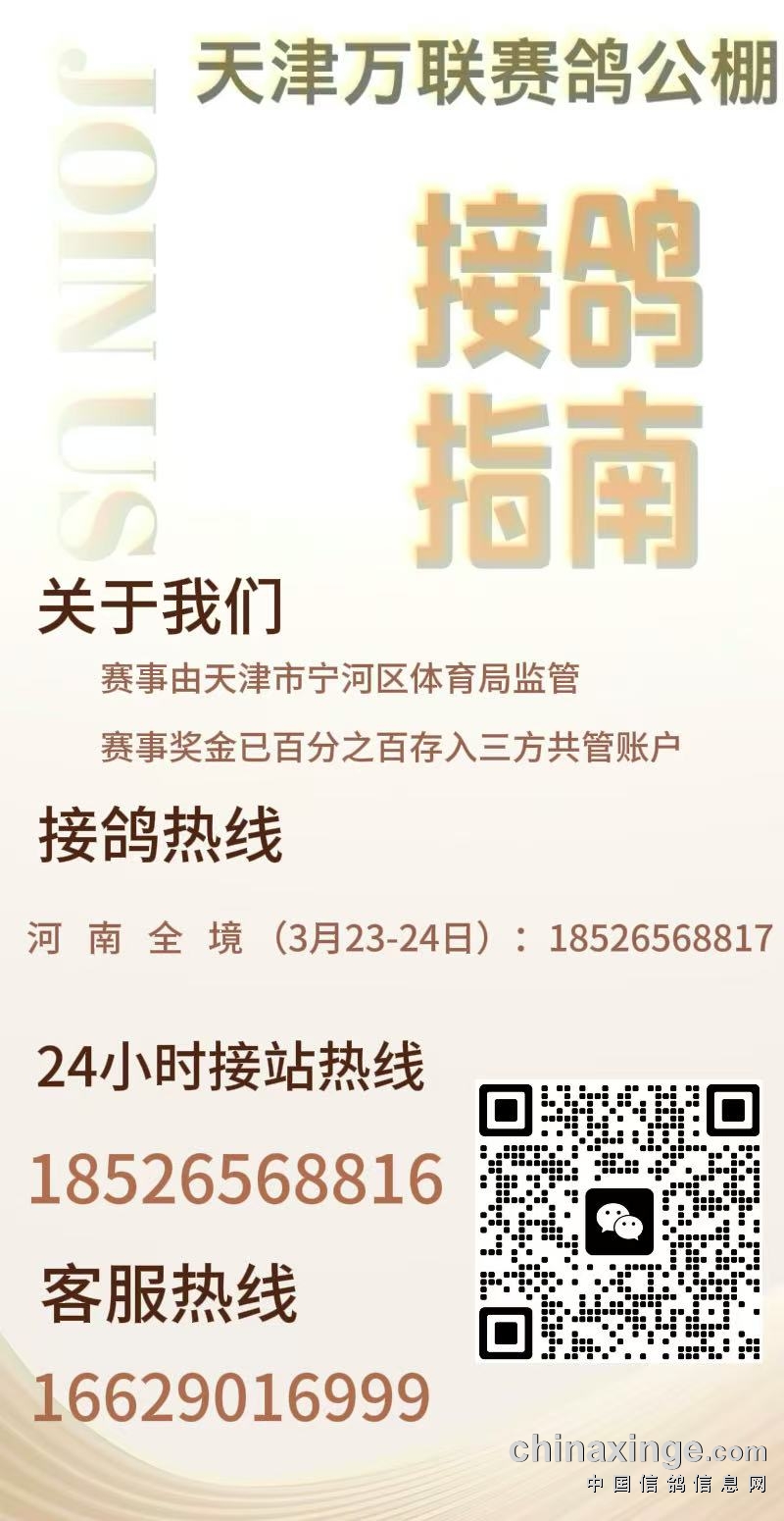 天津万联赛鸽公棚3月23-24日河南全境接鸽通知