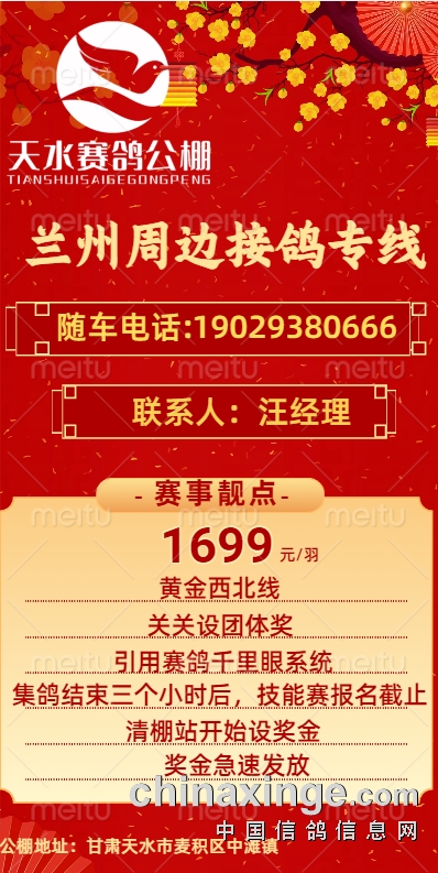 • 甘肃天水赛鸽公棚:招聘信息 (2026-2-20 18:01:50)